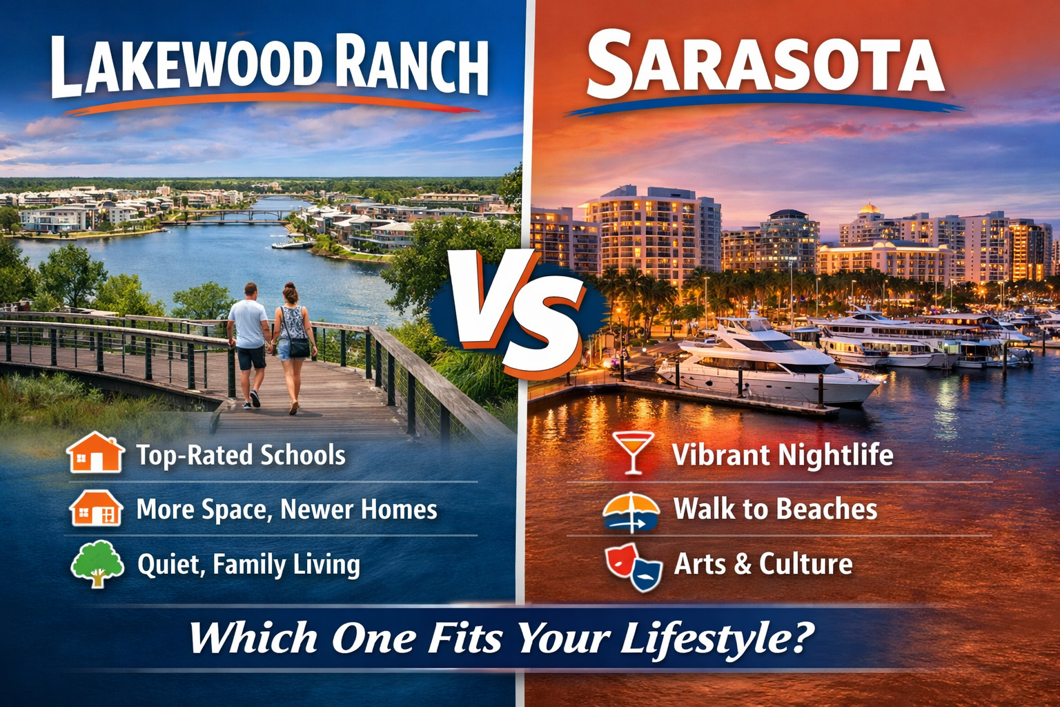 Choose Sarasota if walkability, culture, and nightlife matter most. Choose Lakewood Ranch if you want newer homes, strong schools, more space, and a quieter lifestyle.